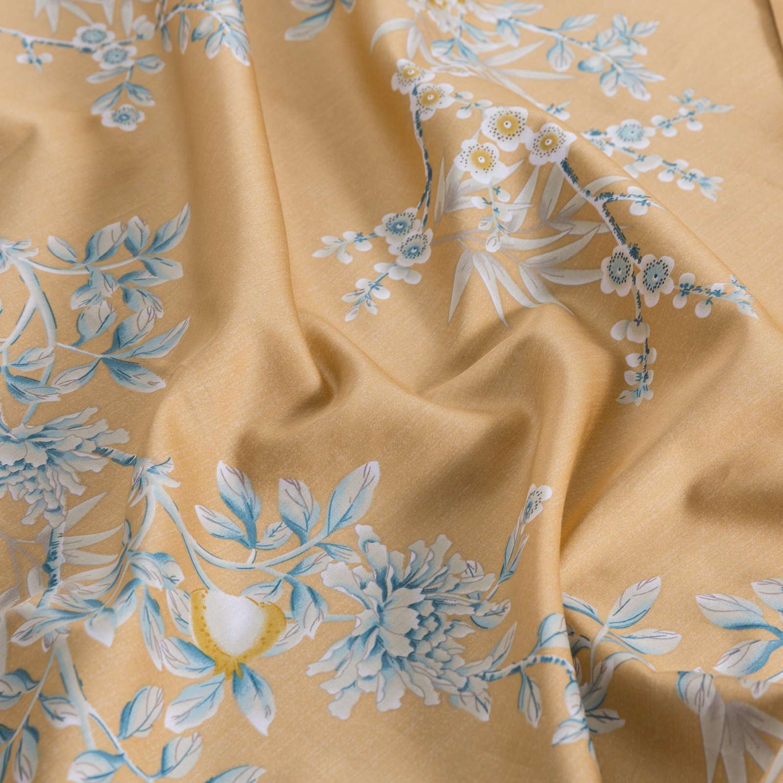Eastern Floral Chinoiserie Garden Duvet Cover Set Floral Botanical Print – Muted Mustard, Teal